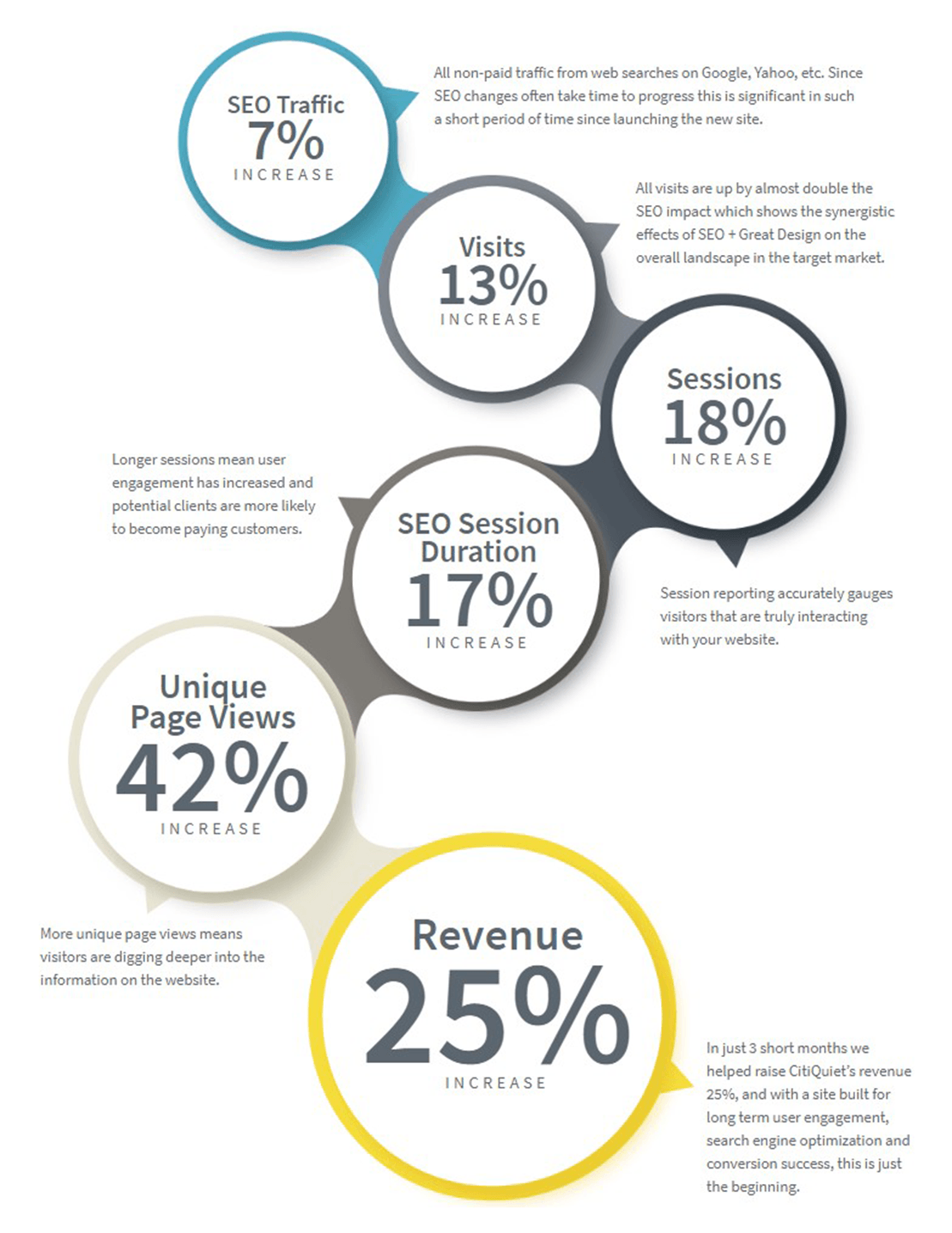 SEO doesn’t just happen. A successful SEO plan needs to come from two places: functioning, responsive design, and technical know-how. On this project for CitiQuiet, e9 worked with our SEO partner agency to find the sweet spot between those two places in order to improve search rankings and move customers to action. After three short months, these are the results from a successful partnership, a synergetic relationship, and a lot of talent.