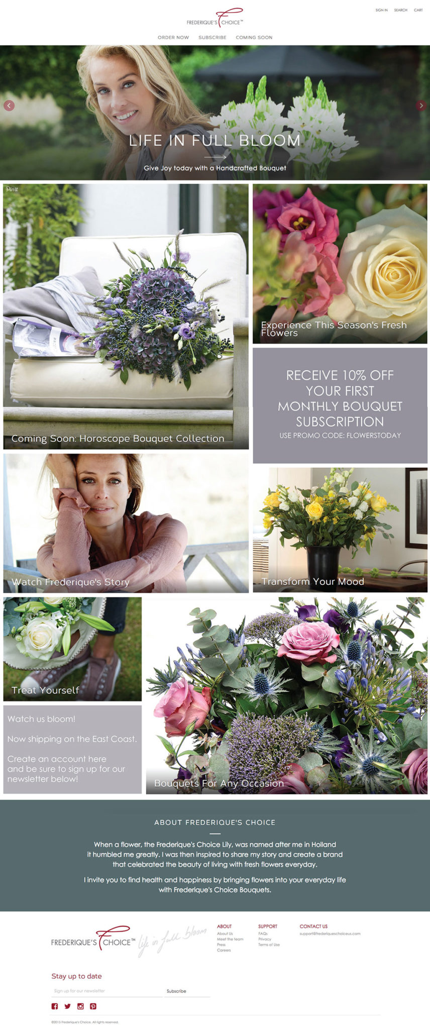 Since leaving the runways of Paris and Milan, supermodel Frederique van der Wal has surpassed her original level of success. She’s emerged as a high-profile businesswoman and “national institution” in her native Holland. Van der Wal brought her floral business Frederique’s Choice—an established brand throughout Europe—to America. After an extensive search, Frederique and her team chose e9digital to build their North American site.